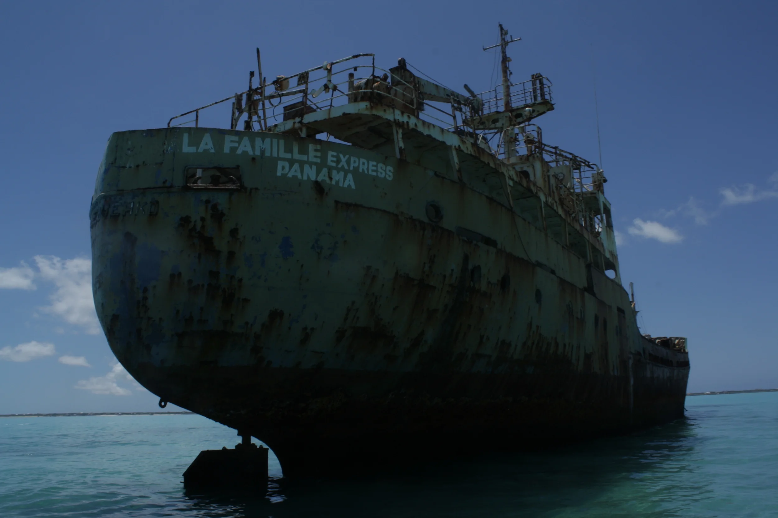 Off the coast of Providenciales, in the Turks and Caicos Islands, a ship looms near the horizon. Curious, I hopped on a jet ski and headed out to see it up close. Then when I saw the decaying cargo net hanging off the side I figured I had to climb aboard.